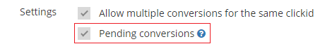To enable pending conversions for a campaign, enable the option Ausstehende Konversion in the campaign settings page.